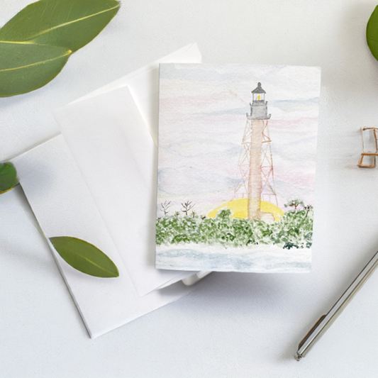 Anclote Lighthouse at Sunset Watercolor Greeting Card